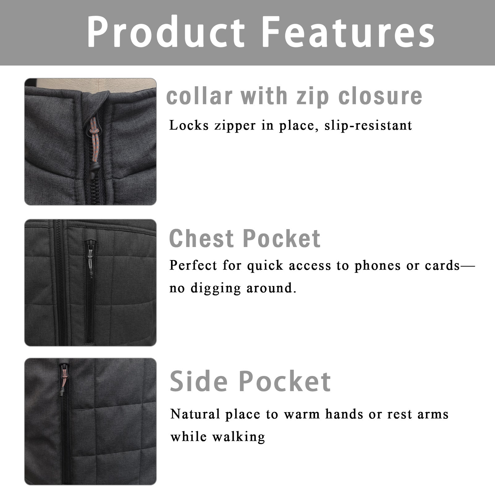 【Practical Pockets】: Two deep handwarmer pockets and a zippered chest pocket keep essentials like phones, wallets, or keys safe and organized. The snug fit prevents items from bouncing during activities, adding convenience for daily life or outdoor adventures